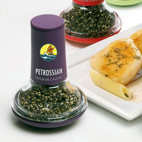 Perusahaan Petrossian menghadirkan Caviar Powder, butiran caviar kering yang ditempatkan di wadah grinder mungil. Sekilas, wujud caviar dan tempatnya mirip botol lada hitam yang biasa diletakkan di meja bersama botol garam.