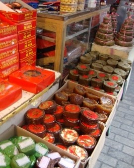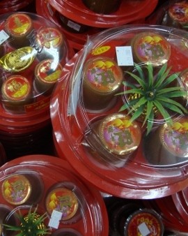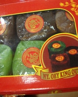 Pilihannya cukup beragam, mulai dari harga Rp 6.500 (bungkus plastik, tanpa kotak, ukuran kecil, buatan Tegal), Rp 30.000 (kotak karton isi empat dodol Cina ukuran sedang, buatan Medan), sampai Rp 40.000 (dodol Cina besar berbungkus daun pisang, berlabel merah).