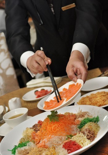 Restoran Pearl menyajikan Abalone Yee Sang dengan harga ukuran kecil dan besar masing-masing Rp. 588.000+ dan Rp. 888.000+. Untuk Lobster Yee Sang, harganya Rp. 388.000+ dan Rp. 588.000+, dan Yee Sang dengan ikan salmon harganya Rp. 238.000+ dan Rp. 388.000+.