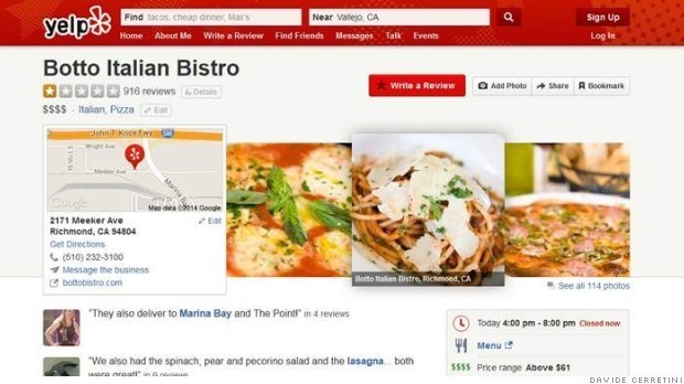 Dua tahun lalu, Davide Cerretini dan Michele Massimo membeli beberapa ruang iklan di situs ulasan restoran Yelp! untuk mempromosikan restoran Italia mereka, Botto Bistro. Menurut keduanya, mereka menyerah setelah ditelepon terus-menerus oleh staf penjualan iklan situs tersebut.