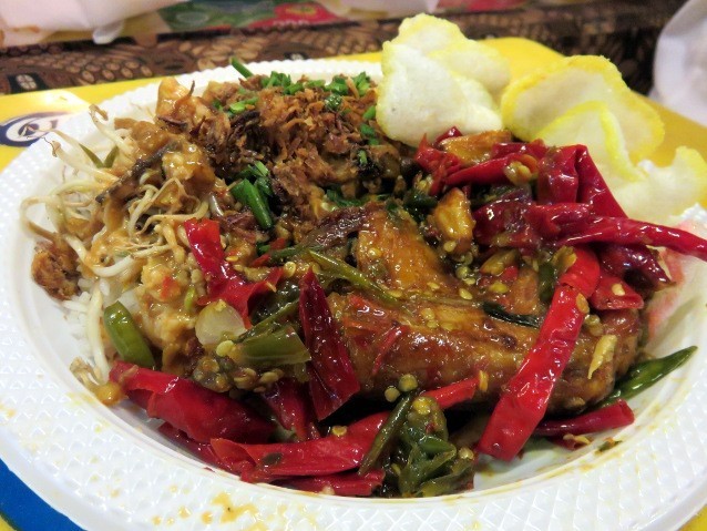 Daging ayamnya terasa empuk hangat dengan bumbu bawang yang meresap. Yang istimewa adalah sambalnya yang garang menyengat sehingga dijamin mulut 'mbledos' atau 'meledak' kepedasan.