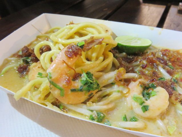 Tekstur mienya yang kenyal semakin enak dipadu dengan siraman kuah kental yang gurih beraroma santan. Enak ditaburi dengan irisan daun seledri, daun bawang dan bawang goreng. Slurp!