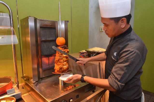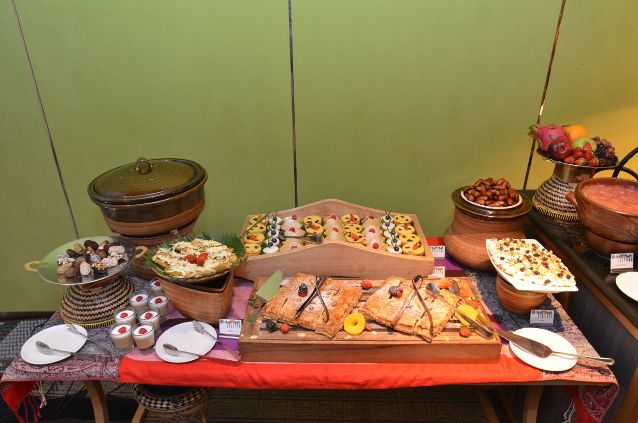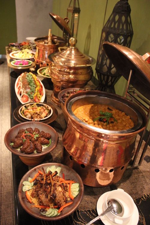 Hidangan andalan seperti Lamb kafsa, Shawarma, Shish taouk, Al-Mandi, Dajaj shawarma, sate dan seafood tak ketinggalan. Bagi penyuka manis, coba nikmati Baklava, Umali, buah segar dan pencuci mulut Indonesia,