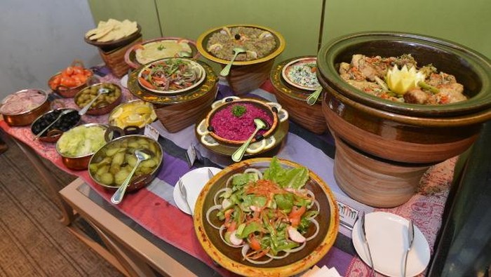 Dalam deretan appetizer terdapat Baba ganoush, Hummus, Tabouleh, Kacang hijau dengan saus plecing dan selada gaya Indonesia. Sementara sajian sup ada Sawrabat al-nikhi, Tauto dan lainnya.