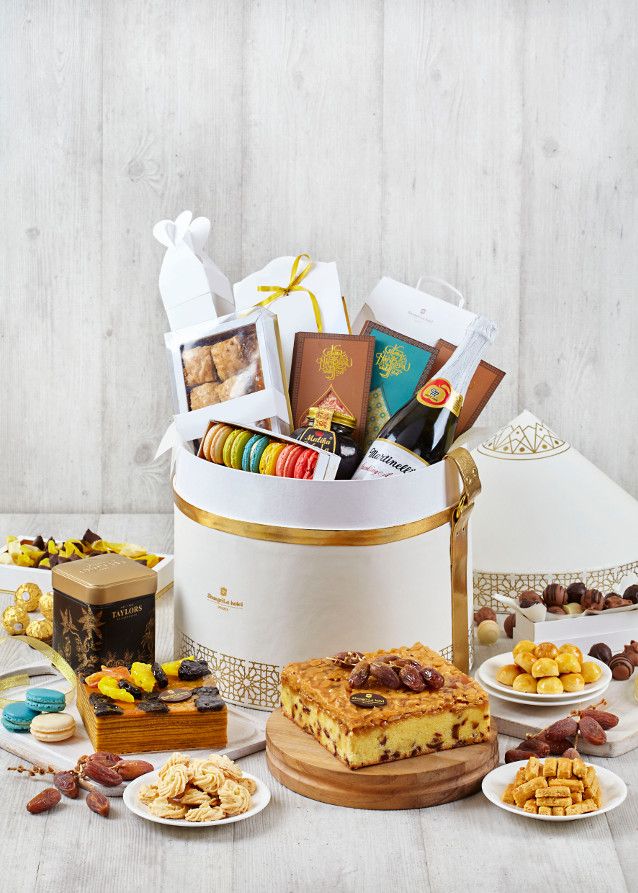 Isiannya antara lain cokelat, kurma, manisan buah, kue kering Indoensia, baklava, kue lapis, macaroons, kacang-kacangan, sparkling juice, dan minyak zaitun. Tiap buahnya dibanderol mulai dari Rp 750.000++.