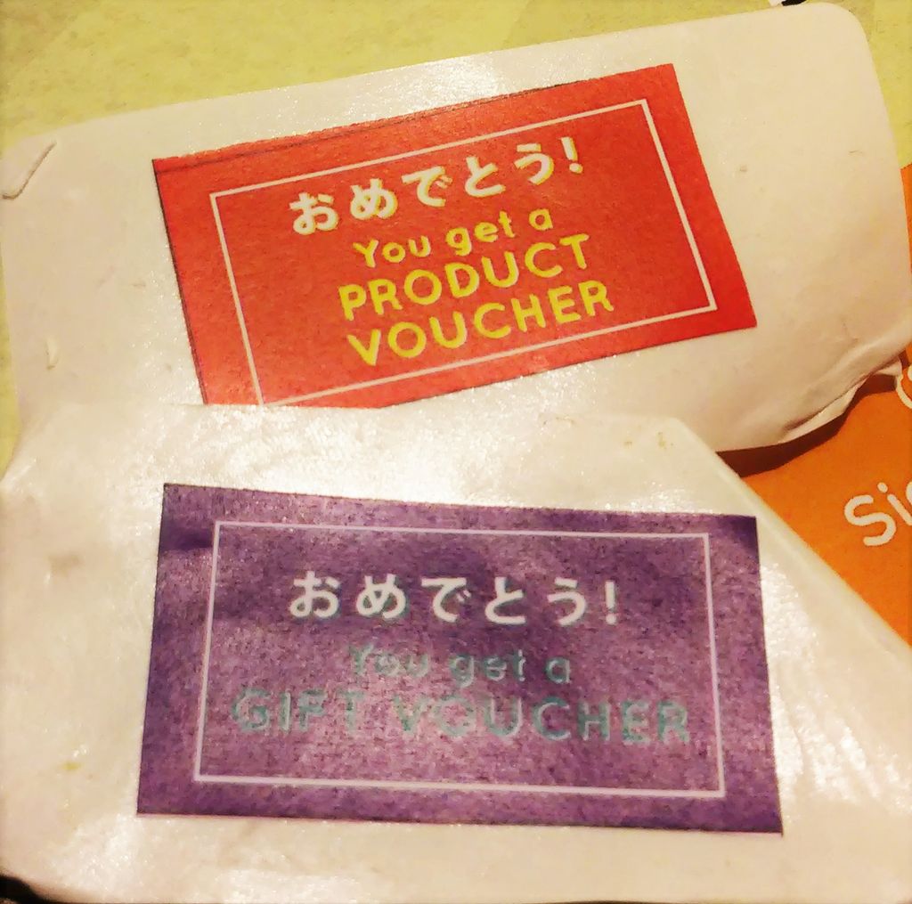 Untuk free item dan merchandise, hadiah telah ditentukan akan langsung diserahkan. Semua hadiah baru bisa dilihat setelah selesai makan. Ini akan membuat acara makan sushi jadi menyenangkan.