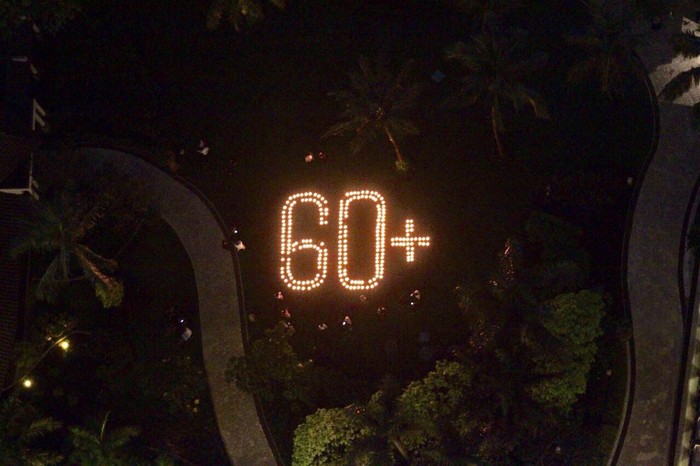 Tamu hotel diajak berpartisipasi menyalakan lilin dari batok kelapa bekas. Sekitar 150 batok kelapa dijadikan wadah lilin dan disusun membentuk angka '60+'. Selepas seremonial, tamu ikut disuguhkan minuman dari air kelapa.