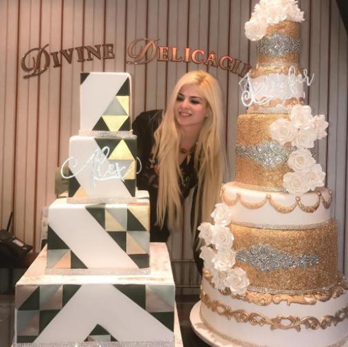 Ia mempercayakan pembuatan kue pada Divine Delicacies di Miami, AS. Bakery ini memang terkenal dengan kreasi kue fondant berdetail rumit. Divine Delicacies bahkan pernah bikin kue untuk Rihanna hingga Kim Kardashian. Mengenai detail kue, ada 6 tingkat susunan kue yang menjulang tinggi.
