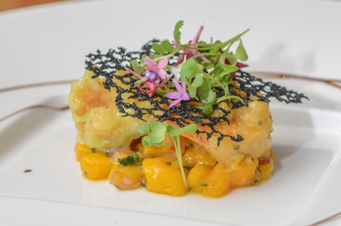 Sedangkan udang telur asinnya juga gurih sedikit manis. Semakin unik karena Sam memadukan dua udang goreng tepung tersebut dengan salsa mangga yang manis segar.