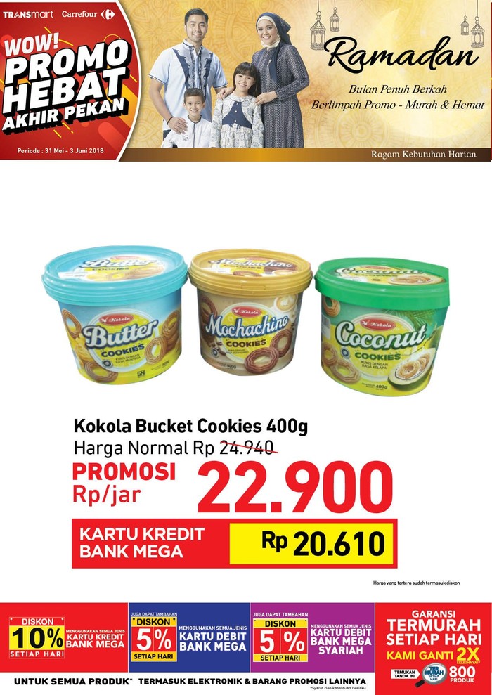 Tidak ketinggalan, ada penawaran menarik dari Kokola Bucket Cookies 400 gr dengan harga promosi Rp 22.900/jar dari harga normal Rp 24.940/jar. Tentu dengan berbagai pilihan sajian akan membuat suasana silaturahmi jadi makin semarak.