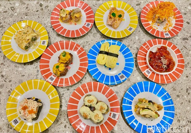 Harga yang ditawarkan menggiurkan, mulai dari Rp 10.000 saja. Menu ini ditandai dari piring sushi berwarna biru. Untuk piring kuning berarti harganya Rp 15.000 dan piring merah Rp 20.000.