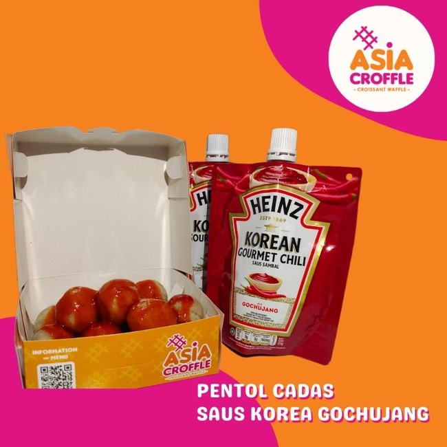 Sajian ini memadukan pentol nan kenyal gurih dengan sambaran rasa pedas dari saus gochujang ala Korea. Pada menu ini, Asia Croffle menyiramkan pentol gurih buatan mereka dengan saus sambal Heinz Korean Chili Gochujang.