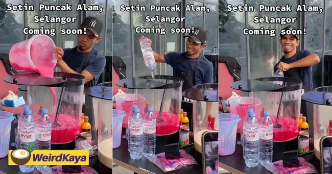 Ia tampak mencampurkan air tersebut ke dalam racikan esnya. Netizen pun ramai-ramai mempertanyakan harga es kaki lima tersebut. Evian sendiri menjadi air mineral mahal karena bersumber dari mata air di pegunungan Alpen Swiss.