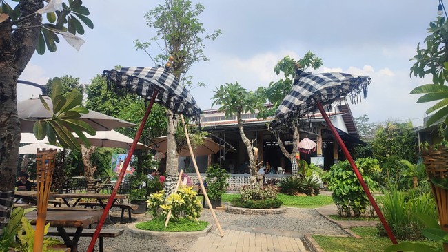 Sulit mempercayai di kawasan Sasak Panjang, Kabupaten Bogor yang relatif sunyi ada kafe bernuansa Bali yang asri. Kafe dan resto Kamboja Green House, namanya.