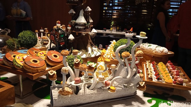 Deretan dessert bertema Winter in Wonderland bisa dicicipi sepuas hati. Ada juga kalkun hingga salmon en croute yang siap manjakan lidah di hari natal.