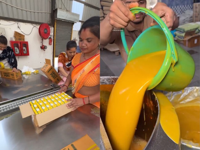 Proses pembuatan jus mangga kemasan di sebuah pabrik India bikin netizen heran. Pasalnya, pabrik tersebut tidak menggunakan buah mangga sama sekali, tetapi hanya cairan kuning dicampur pewarna.