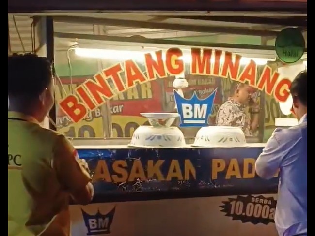 Video razia rumah makan Padang itu beredar luas di media sosial, menunjukkan 2 orang melepas label "Masakan Padang" di tempat yang menjual harga menunya seharga Rp 9 ribu per porsi.