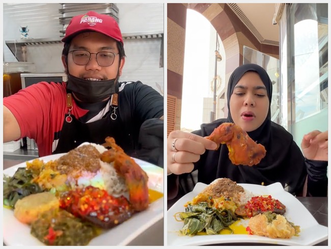 TikToker Ayu Wisya sering berbagi konten kuliner. Saat dirinya umrah bareng suami, ia menunjukkan momen menyantap nasi Padang yang merupakan makanan favoritnya.