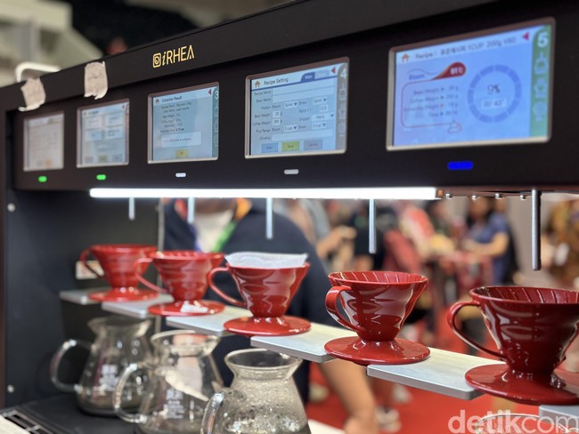 Yang tak kalah menarik, pengunjung bisa merasakan sensasi menikmati kopi yang diseduh dengan teknik pour over, tetapi menggunakan mesin otomatis merek iRhea.