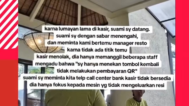 Baru-baru ini seorang wanita curhat sambil menangis setelah dituduh menipu oleh kasir saat makan di restoran Jendela Bali Panoramic di GWK, Bali. Meski telah membayar lewat QRis senilai Rp 400.000-an, kasir bersikeras uang tak masuk dan menolak melihat bukti pembayaran. Curhatannya ini jadi viral dan mengundang reaksi serta komentar dari netizen.