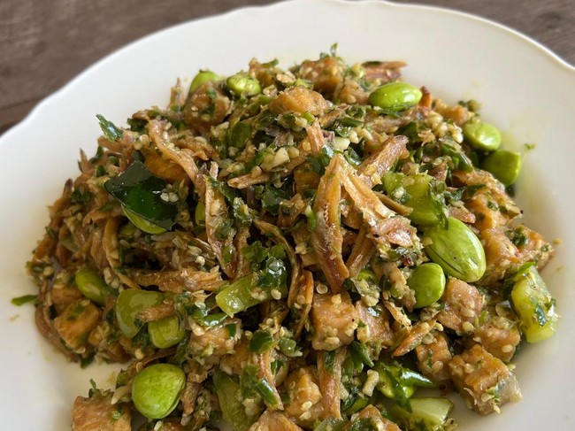 Rasa gurih asin ikan asin bisa jadi lauk lezat setealh makan banyak makan santan dan gorengan di hari raya. Ikan asin yang digoreng kering dipadukan dengan sambal cabe hijau yang pedas nendang.