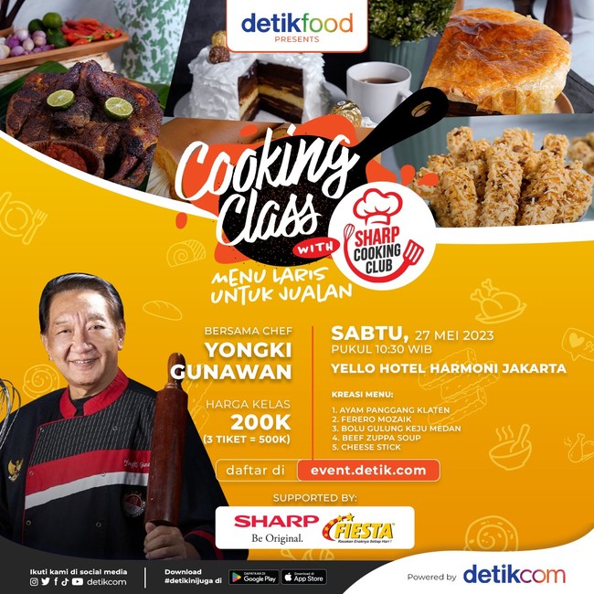 Jika kamu senang memasak atau membuat kue dan ingin bisnis makanan atau menambah menu jualan, cooking class ini cocok buat kamu. Catat waktunya: