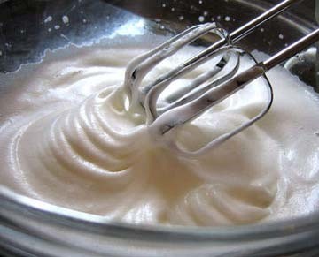 Sebelum mulai mengocok pastikan semua peralatan; wadah, kocokan mikser, palet dan sendok benar-benar bersih dan kering serta bebas dari lemak. Gunakan peralatan yang kering dan bersih. Jika ada jejak lemak sedikitpun dari peralatan akan membuat putih telur tak bisa beremulsi baik dengan gula. Hasilnya lembek dan berair atau pecah. Jika terjadi demikian, buang hasil kocokan tersebut dan ganti wadah yang bersih dan kering untuk mengocok yang baru. Pasyikan putih telur sudah dalam suhu ruangan sebelum dikocok.