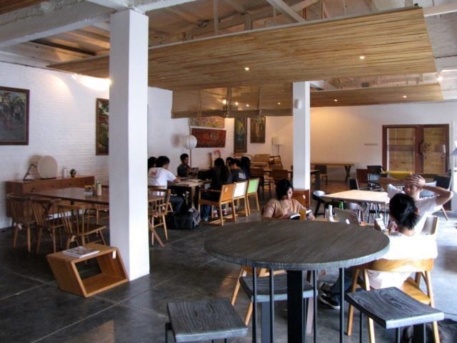 Jakarta - Dari luar, Tryst"s sudah mencuri perhatian karena bangunannya yang unik. Ternyata, interior restoran ini juga menarik karena menggabungkan konsep restoran dan galeri. Yuk, lihat-lihat restoran di Kemang ini!