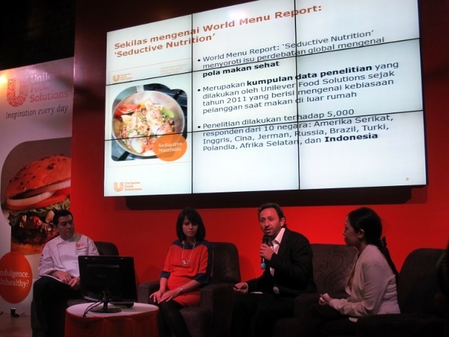 Jakarta - Selama ini, stigma yang menempel tentang makanan sehat adalah tidak enak, tidak mengenyangkan, tidak menggugah selera, dan mahal. Unilever Food Solutions (UFS) mencoba mematahkan anggapan ini dengan menyelenggarakan kampanye Seductive Nutrition. Yuk lihat kegiatannya! (Fitria Rahmadianti/Detikfood)