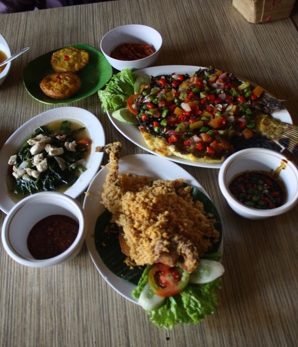 Jakarta - Makan gurame emang paling enak dicocol sambal yang pedas. Seperti di Restoran Wulan Sari yang berada di Bekasi ini, nasi mengepul yang disajikan juga bisa disantap dengan ayam kremes, gurame bakar hantu petir dan cah kangkung ayam. Porsinya yang royal, paling enak disantap beramai-ramai. (Flora Febrianindya/DetikFood)