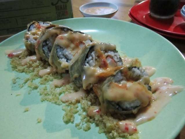 - Kalau ingin menyantap sushi, banyak pilihan. Di Jakarta banyak tersedia mulai dari restoran bergaya Jepang asli hingga warung mungil seperti Rumah Sushi juga siap untuk menggoyang lidah para penikmatnya. Sushi Marry Jane Roll berlapis tobiko plus mayonaise. Tak kalah cantiknya dengan Little Monster yang disajikan bertumpuk, bisa dinikmati untuk santap malam.