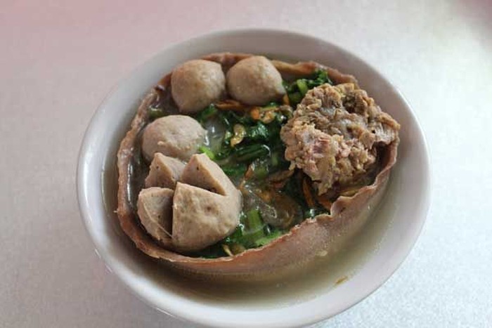 Makan bakso memang menggunakan mangkuk. Tapi yang satu ini mangkuknya juga bisa dimakan karena terbuat dari adonan bakso juga. Unik ya! Foto: Istimewa