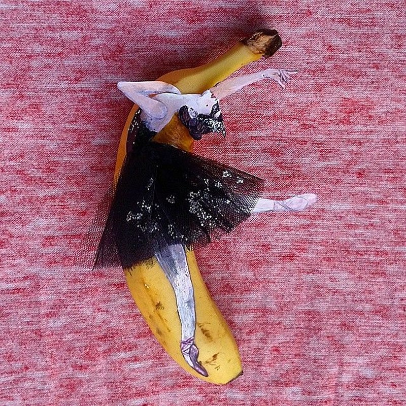 Cantiknya penari balerina ini, dilukis di atas buah pisang dan ditambahkan efek 3D sehingga terlihat hidup dan nyata. Foto: Instagram @funwithfruit