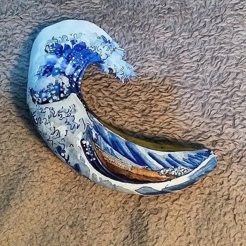 Keren! Deburan ombak biru ini terbuat dari pisang. Detail gambar dan permainan warna membuat pisang ini jadi hasil karya yang indah. Foto: Instagram @funwithfruit