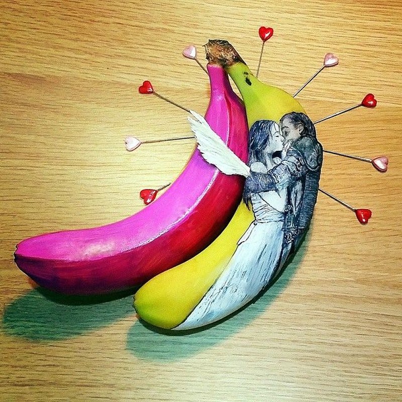 Elisa Roche punya cara yang unik menuangkan kreatifitasnya di atas buah. Wanita ini sering melukis menggunakan pisang sebagai objek utamanya. Foto: Instagram @funwithfruit