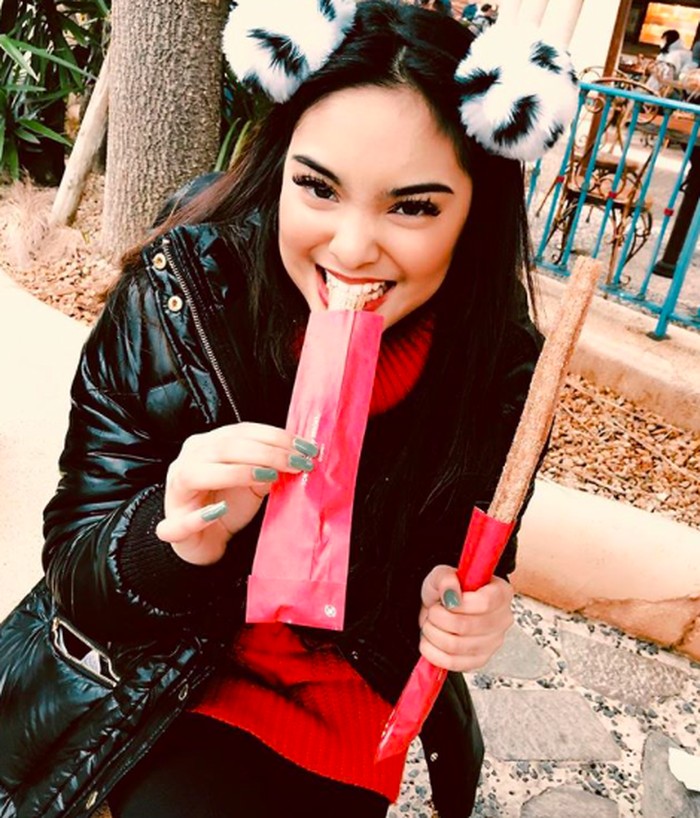 Pemilik nama lengkap Rakyan Ratri Syandriasari Kameron ini sedang berlibur ke Jepang. Di Disney Land, ia sempatkan cicip churros.Foto: Instagram syandria