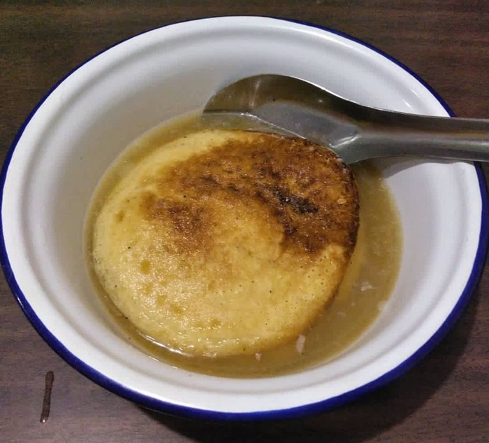 Kalau @renzybinyoo punya surabi dengan topping keju cheddar yang melimpah. Gurih banget! Foto: Instagram @renzybinyoo