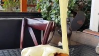 Cheeseburger yang satu ini beda dengan cheeseburger kebanyakan. Isiannya ada mac and cheese dengan keju yang mulur. Lelehan kejunya terlihat sangat menggoda, kan? Foto: eatwith_pratik
