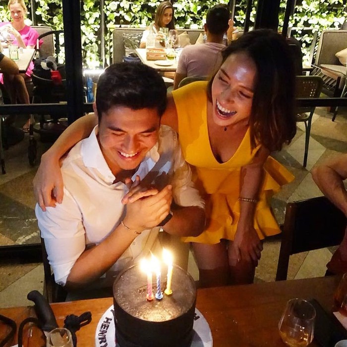 Rayakan ulang tahun yang ke-31, Henry mendapatkan kejutan manis dari sang istri. Lengkap dengan kue cokelat dan tiga lilin di atasnya. Foto: Instagram @henrygolding