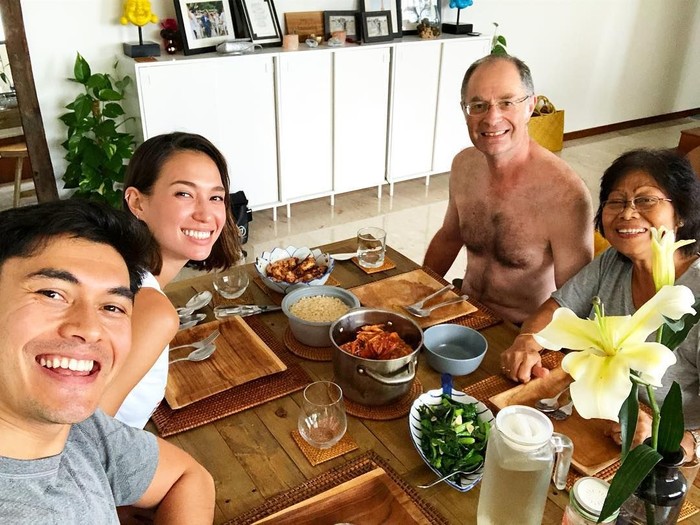 Ditemani sang istri, acara makan siang dengan chilli crab khas Singapura. Semakin meriah dengan kehadiran kedua orang tuanya, Henry juga suka dengan garlic rice yang gurih. Foto: Instagram @henrygolding