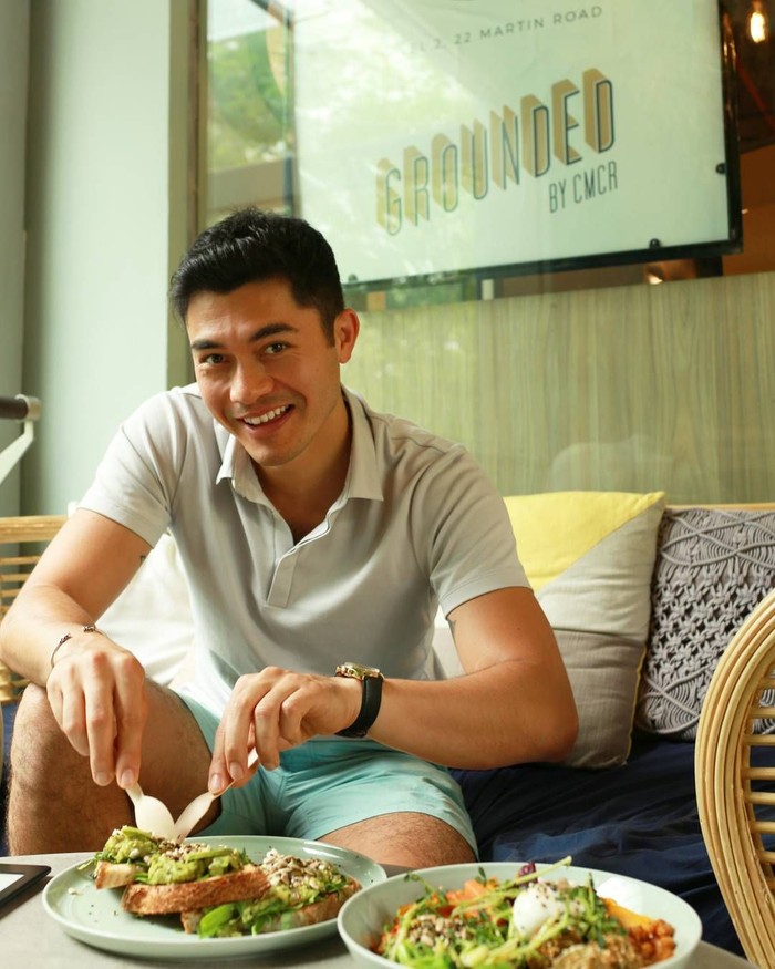Dengan senyuman manisnya, Henry tampil kasual ketika brunch dengan avocado toast dan poached eggs lengkap dengan salad segar. Foto: Instagram @henrygolding