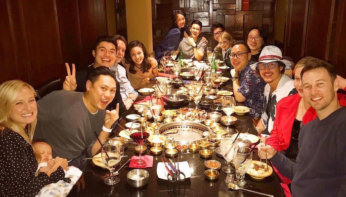 Reunian dengan semua kru dan bintang di Crazy Rich Asians, makin seru dengan hidangan BBQ dan wine serta bir. Foto: Instagram @henrygolding