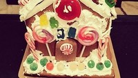Lucunya gingerbread house buatan Lucy Hale. Tampilannya semakin cantik dengan tambahan bunga-bunga mungil yang ditempel pada dua jendela dan satu pintu. Foto: Istimewa