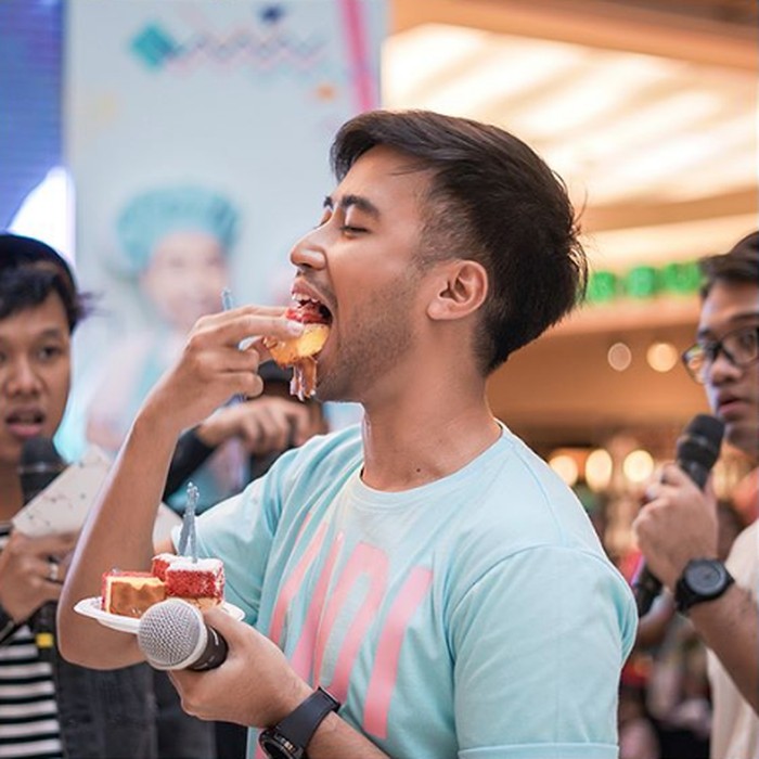Kabar Vidi Aldiano tentang dirinya yang didiagnosis terkena kanker ginjal tentunya membuat semua orang terkejut. Tak disangka, padahal sebelumnya Vidi Aldiano termasuk orang yang aktif. Seperti pada momen di sebuah acara ini, ia nampak bersemangat makan kue. Foto: Instagram @Vidialdiano