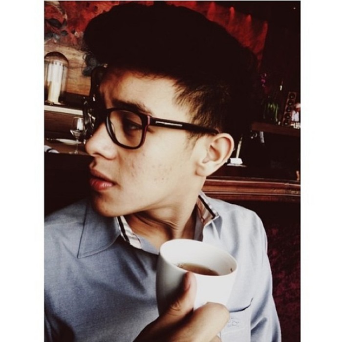 Sambil menyeruput kopi, Ardhito Pramono berpose sambil tersenyum. Gayanya yang casual, tetapi tak mengurangi ketampanan wajahnya.