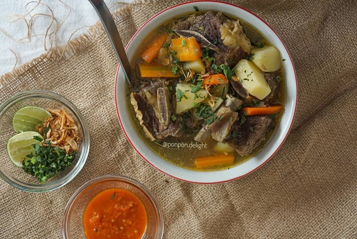 Jakarta - Musim hujan ini enaknya menyantap makanan berkuah hangat dan gurih. Sop dengan paduan daging iga dan sayuran bisa menjadi pilihan.
