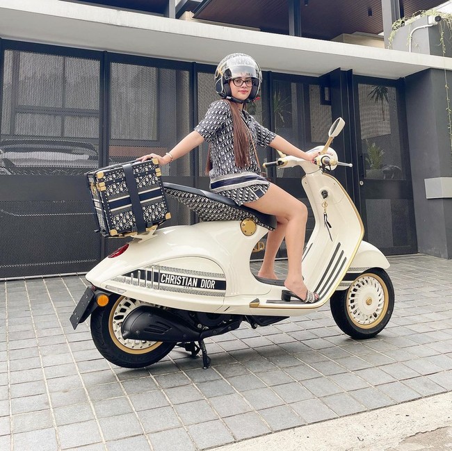 Pose Keren Anggie Jesey yang Viral Beli Tempe Naik Vespa Dior Rp 1.35 M