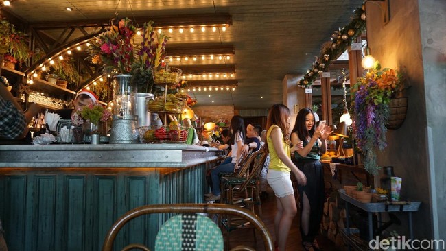 Jakarta - Restoran 'The Garden' menghadirkan banyak tanaman di bagian luar dan dalam resto, suasananya jadi asri. Makanannya pun enak dan menarik.