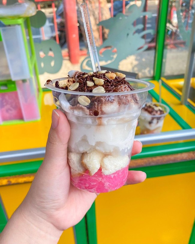 Jakarta - Es podeng merupakan sajian es khas Betawi yang rasanya manis segar. Isiannya ada sagu mutiara, alpukat dan potongan roti tawar dengan harga Rp 10.000-an saja.