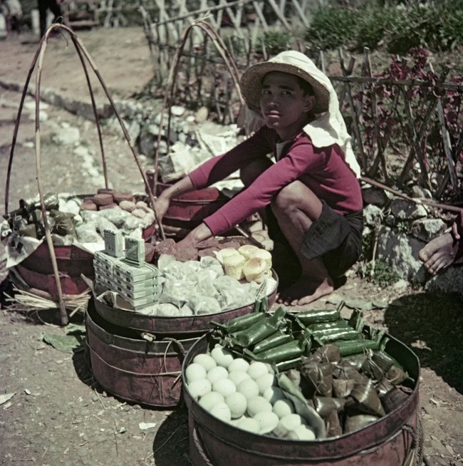 Ini adalah penjual makanan tradisional yang menjajakan dagangannya di sebuah pasar tradisional di pulau Jawa. Ada telur hingga bacan. Foto: Lib.UWM - Forman Harrison